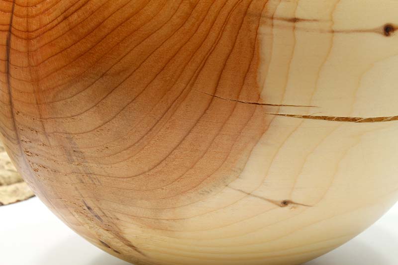 Das Olivenholz des Abendlandes, nur noch schöner. Die Farbe geht über ein Weiß (der Splint), warmes helles Braun, bis zu dunklen roten Adern. Aufgrund der vielen Äste, ist im Holz auf jeden Fall mit schönen Zeichnungen zu rechnen. Das erste Stück, das mir in die Hände fiel war, leider wie so oft der Weg des Holzes, ein Brennholzscheit. Und ich habe es immer noch.
