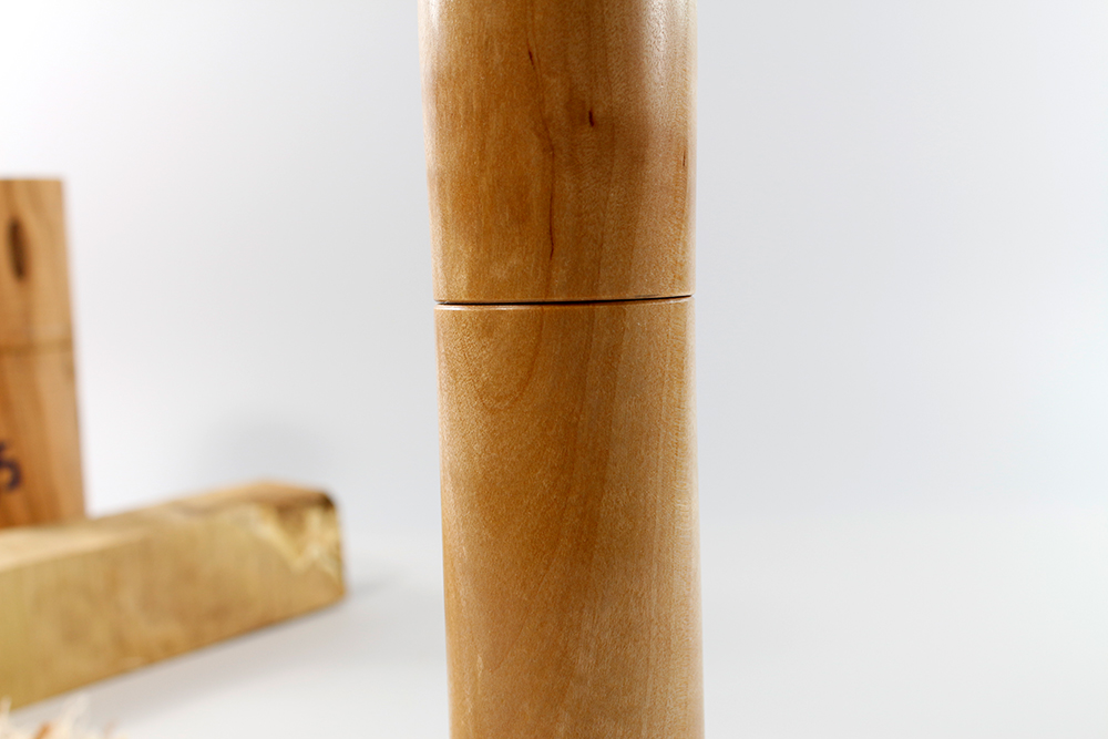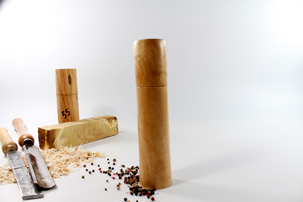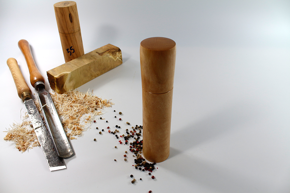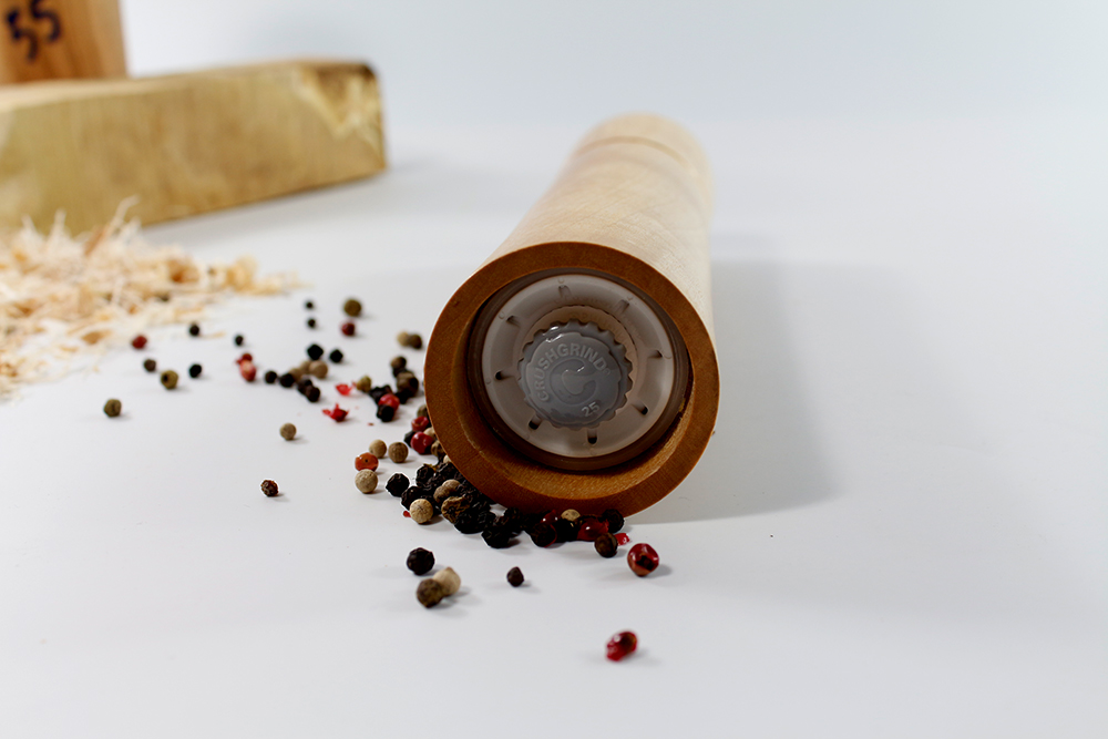 In diese Gewürzmühle habe ich ein Keramikmahlwerk eingebaut, so können Sie sie gleichermaßen als Pfeffermühle, oder Salzmühle oder auch für allerlei andere Gewürze, die gemahlen werden können (und hineinpassen) verwenden.
