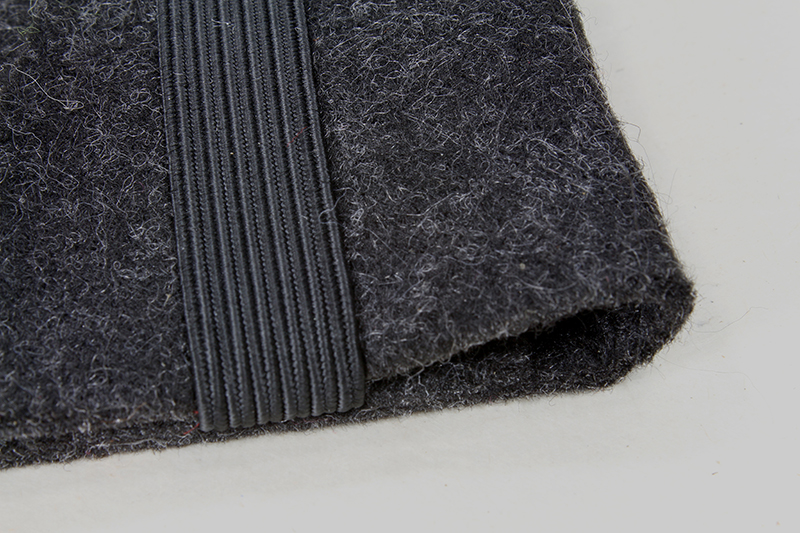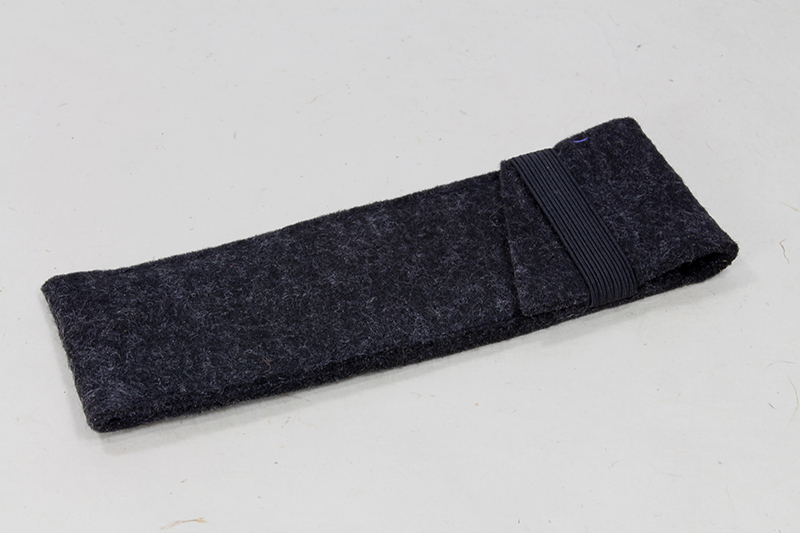 Es ist aus Filz, die Halterung aus anthrazit farbenen Gummiband.