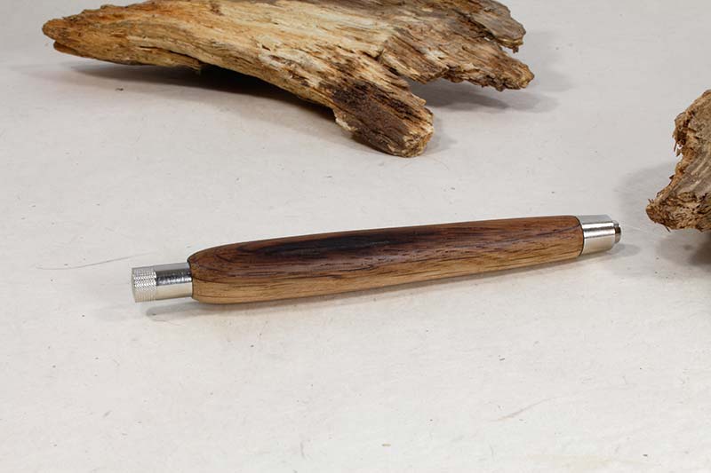 Das Holz ist sozusagen roh. Sie oder Ihr/e Beschenkte/r können die Oberfläche selbst behandeln. Im Rohzustand ist teilweise der Weinstein (rötlich) noch zu sehen.