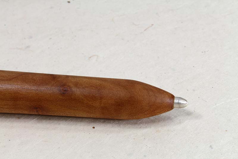Die Mine ist aus Feinsilber (999 er) und schreibt sich nicht ab. Dazu gesagt werden muss aber, dass ein wenig mehr beim Schreiben aufgedrückt werden muss, als bei einer Graphitmine.