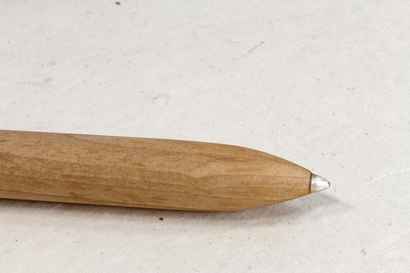 Die Mine ist aus Feinsilber (999 er) und schreibt sich nicht ab. Dazu gesagt werden muss aber, dass ein wenig mehr beim Schreiben aufgedrückt werden muss, als bei einer Graphitmine.