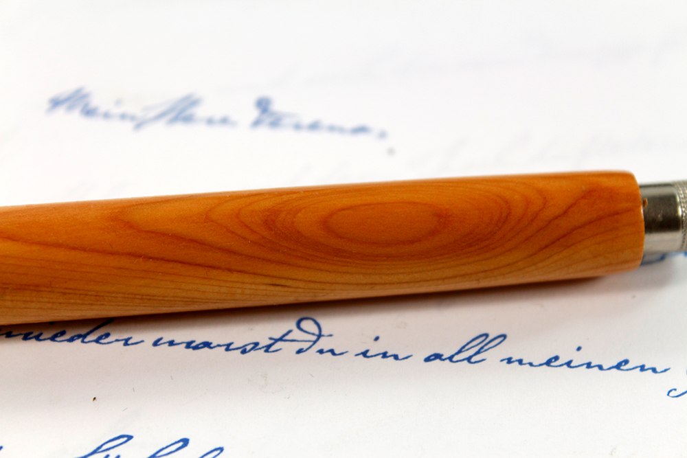 Das Olivenholz des Abendlandes, nur noch schöner. Die Farbe des Holzes geht über ein Weiß (der Splint), warmes helles Braun, bis zu dunklen roten Adern. Aufgrund der vielen Äste, ist im Holz auf jeden Fall mit schönen Zeichnungen zu rechnen. Schon sehr früh (vor 300 000 Jahren) wurde das Holz zum Waffenbau genutzt. Seine wahren und angedichteten (Aberglaube) Eigenschaften machten es zu einem so begehrten Holz, dass im 16. Jahrhundert Schonzeiten erlassen werden mussten. Müssen Sie sich vor Blitzen oder Dämonen schützen, ist ein Stift aus Eibenholz immer nützlich.