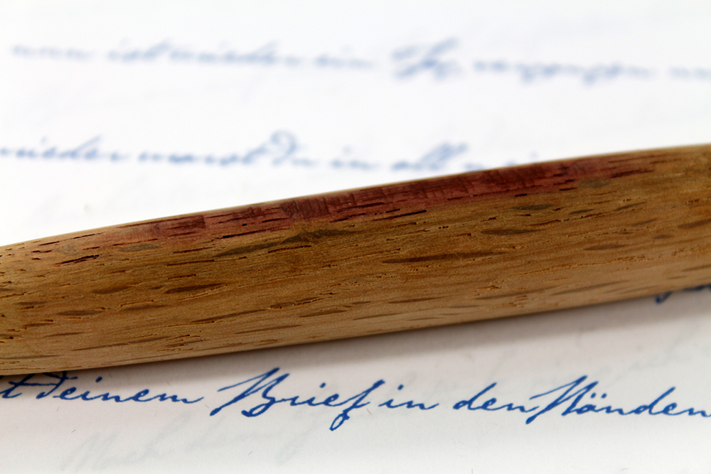 Als ich die Dauben bekam, waren die Innenseiten noch feucht!! Der Duft des Weines entströmte noch dem Holz. Ein dunkler Streifen, erinnert an den gereiften Wein.
