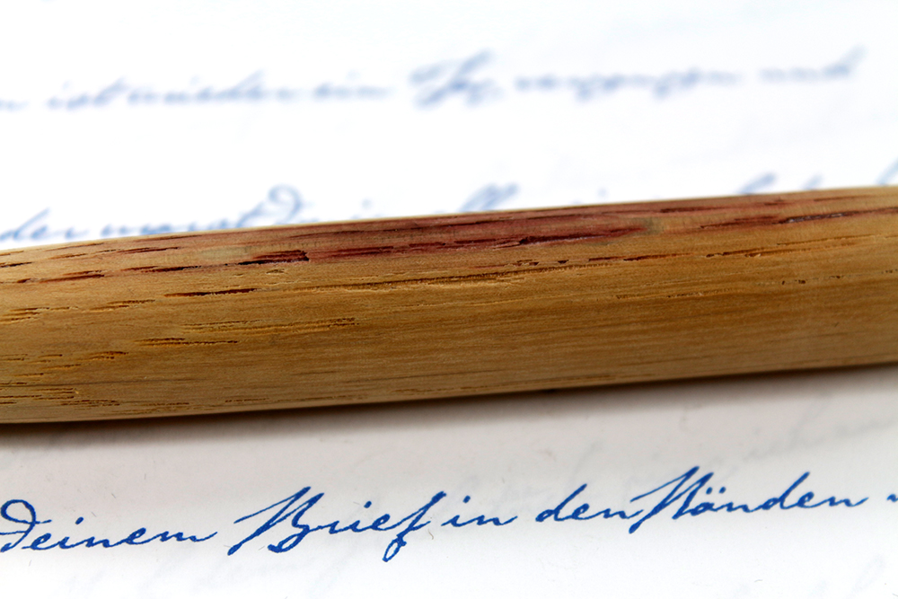 Als ich die Dauben bekam, waren die Innenseiten noch feucht!! Der Duft des Weines entströmte noch dem Holz. Ein dunkler Streifen, erinnert an den gereiften Wein.