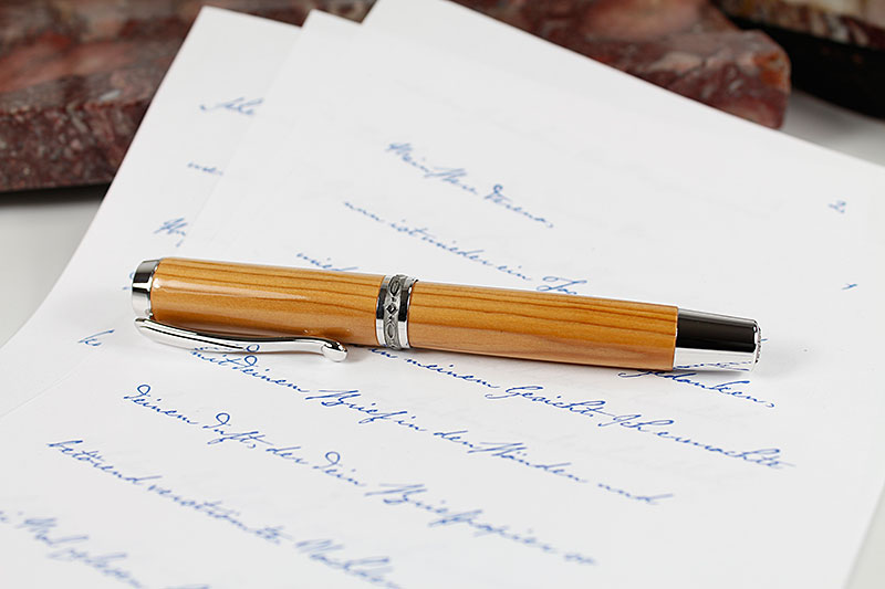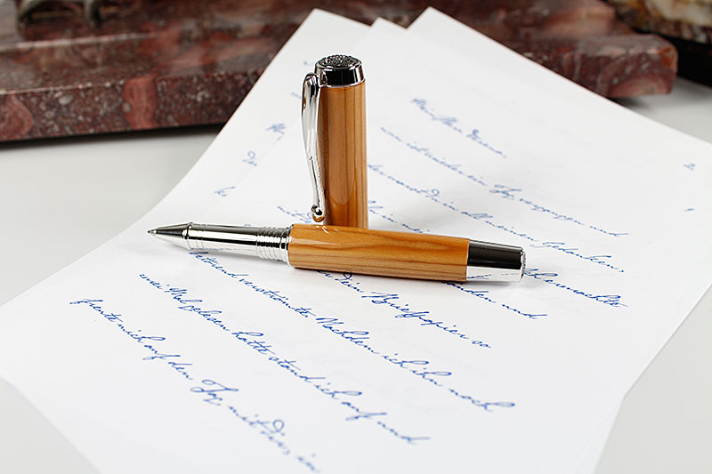 Die Rollerballmine ist mit einer Keramikkugel ausgestattet, die ein federleichtes und sehr gleichmäßigem Gleiten über das Papier