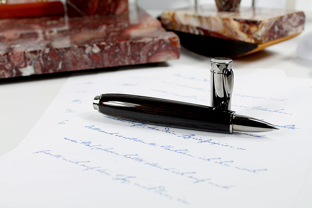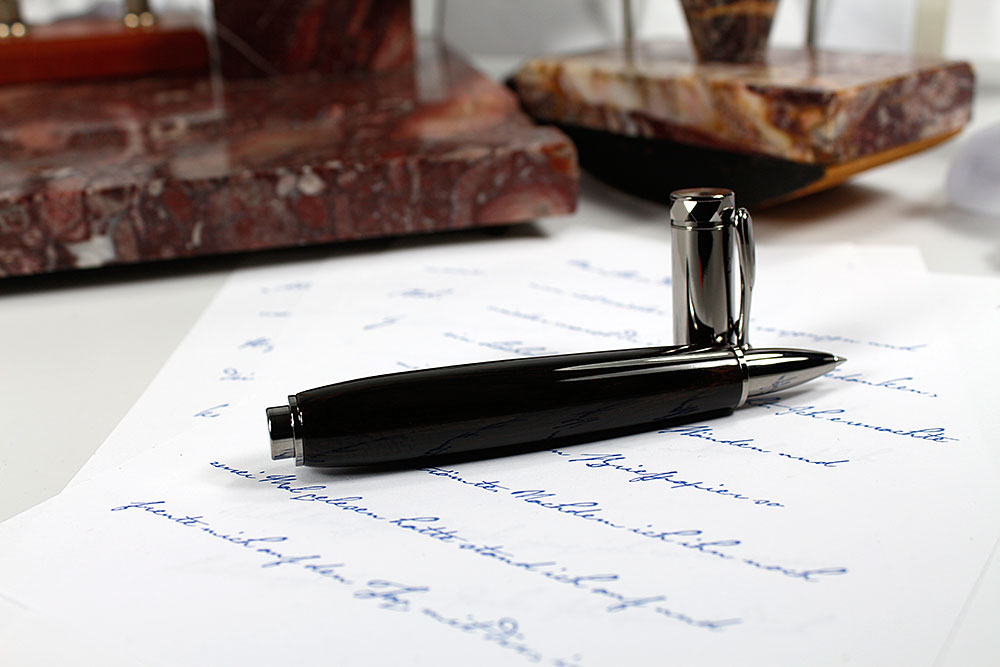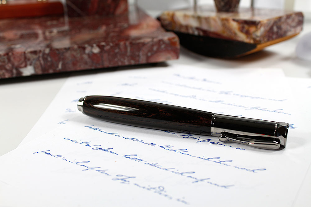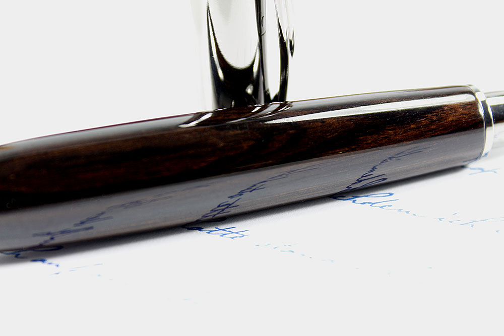 Statt eines Gewindes sitzt in der Kappe ein Magnet. Also kein Schrauben mehr, nur noch ein Klick. Wärend des Schreibens können Sie die Kappe auch auf das Endstück setzen.