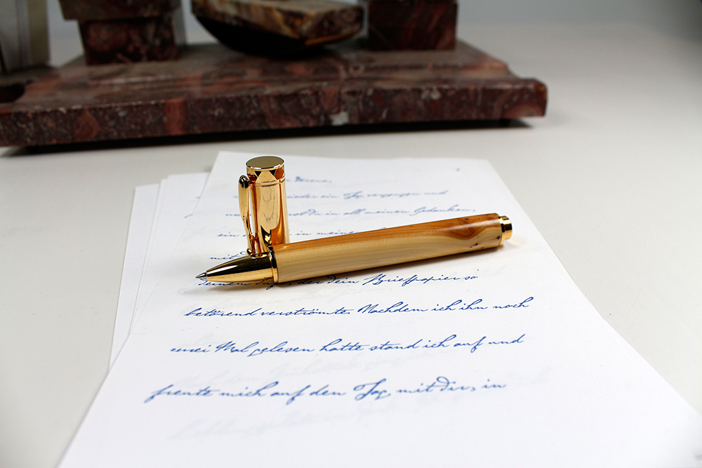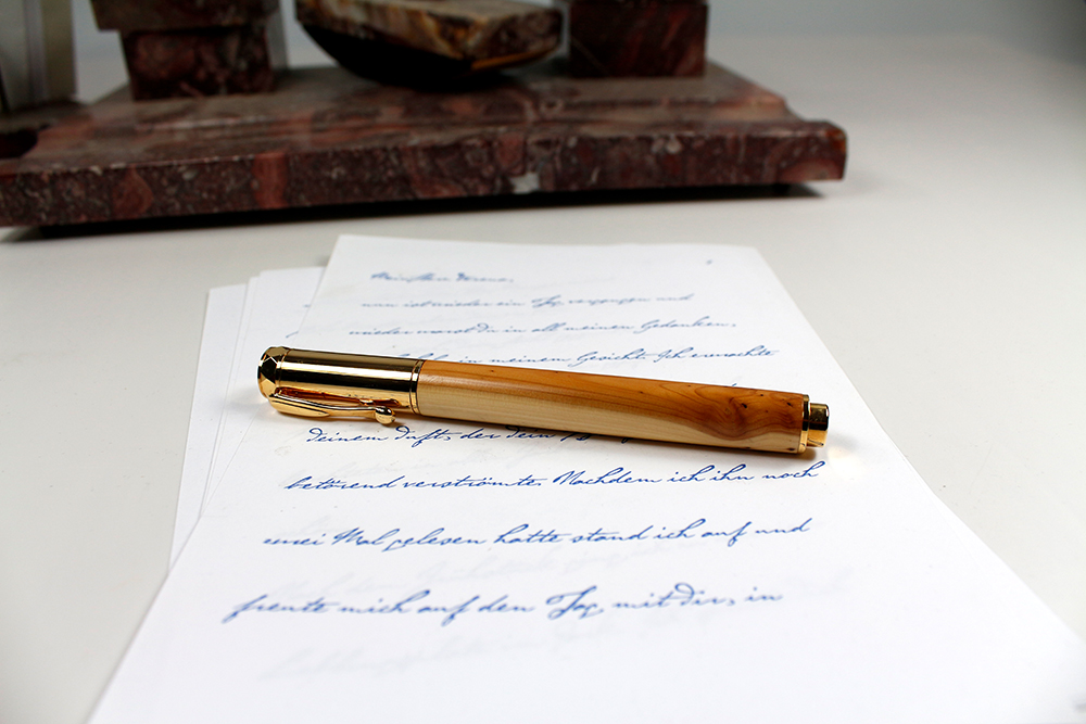 Das Olivenholz des Abendlandes, nur noch schöner. Die Farbe des Holzes geht über ein Weiß (der Splint), warmes helles Braun, bis zu dunklen roten Adern. Aufgrund der vielen Äste, ist im Holz auf jeden Fall mit schönen Zeichnungen zu rechnen. Schon sehr früh (vor 300 000 Jahren) wurde das Holz zum Waffenbau genutzt. Seine wahren und angedichteten (Aberglaube) Eigenschaften machten es zu einem so begehrten Holz, dass im 16. Jahrhundert Schonzeiten erlassen werden mussten. Müssen Sie sich vor Blitzen oder Dämonen schützen, ist ein Stift aus Eibenholz immer nützlich.