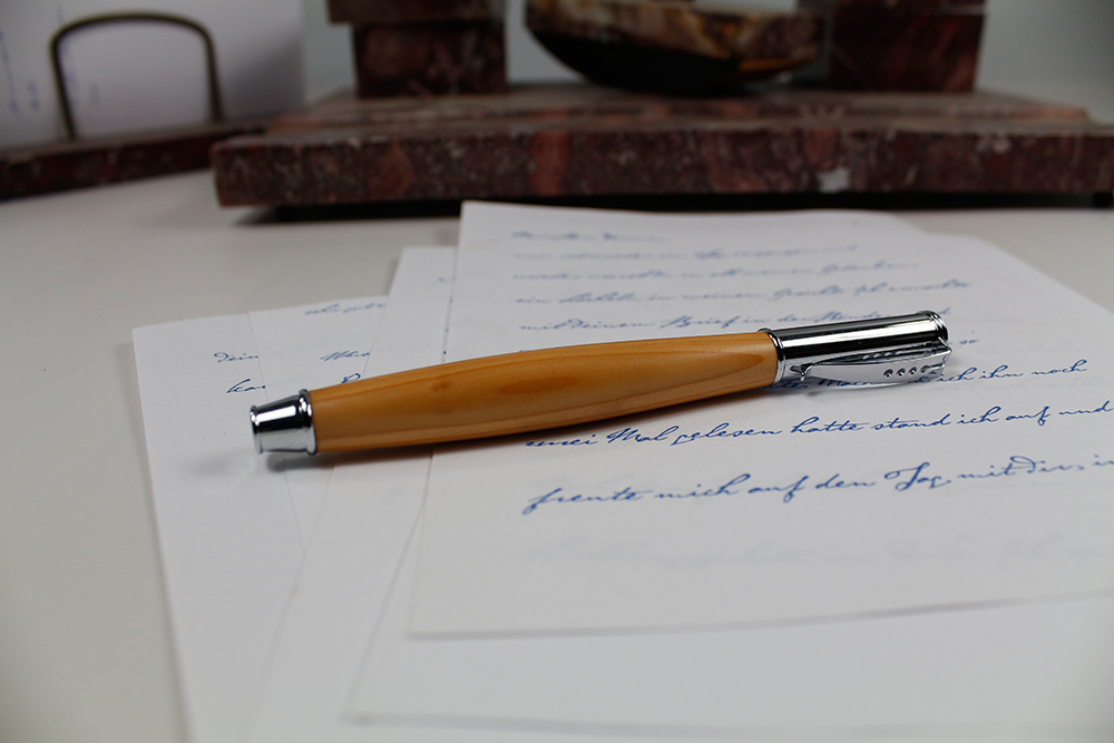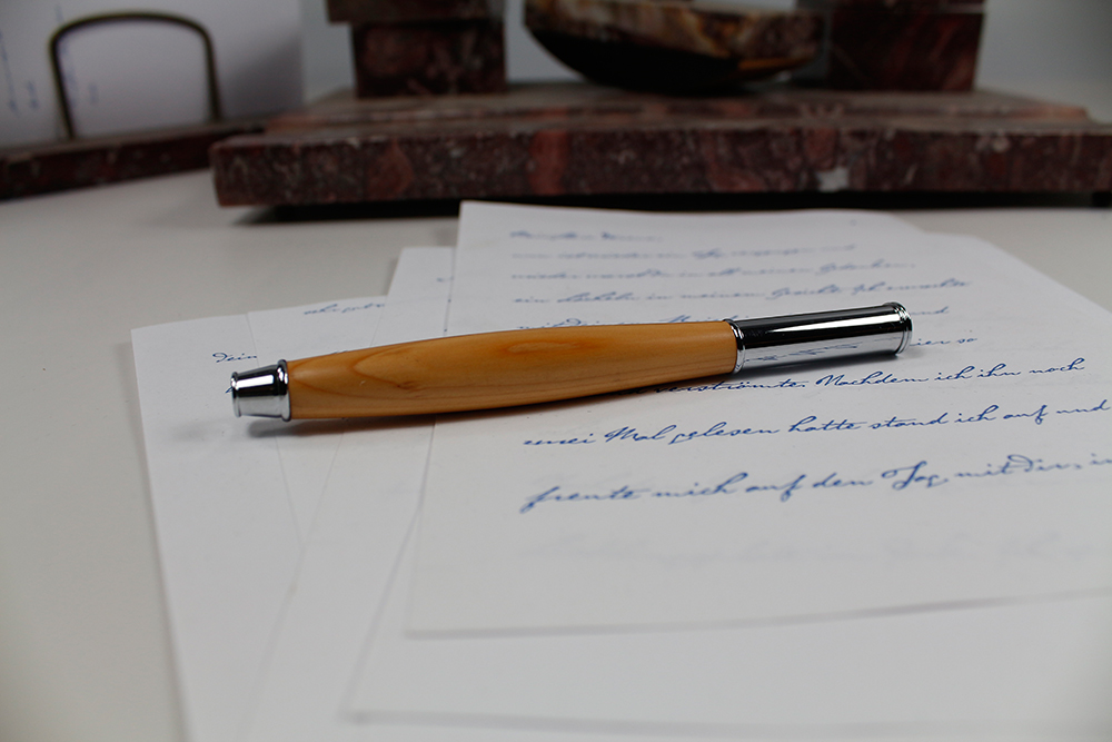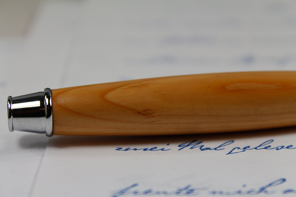 Das Olivenholz des Abendlandes, nur noch schöner. Die Farbe des Holzes geht über ein Weiß (der Splint), warmes helles Braun, bis zu dunklen roten Adern. Aufgrund der vielen Äste, ist im Holz auf jeden Fall mit schönen Zeichnungen zu rechnen. Schon sehr früh (vor 300 000 Jahren) wurde das Holz zum Waffenbau genutzt. Seine wahren und angedichteten (Aberglaube) Eigenschaften machten es zu einem so begehrten Holz, dass im 16. Jahrhundert Schonzeiten erlassen werden mussten. Müssen Sie sich vor Blitzen oder Dämonen schützen, ist ein Stift aus Eibenholz immer nützlich.
