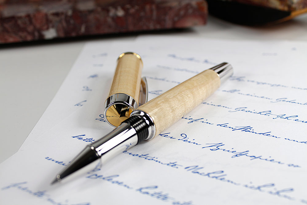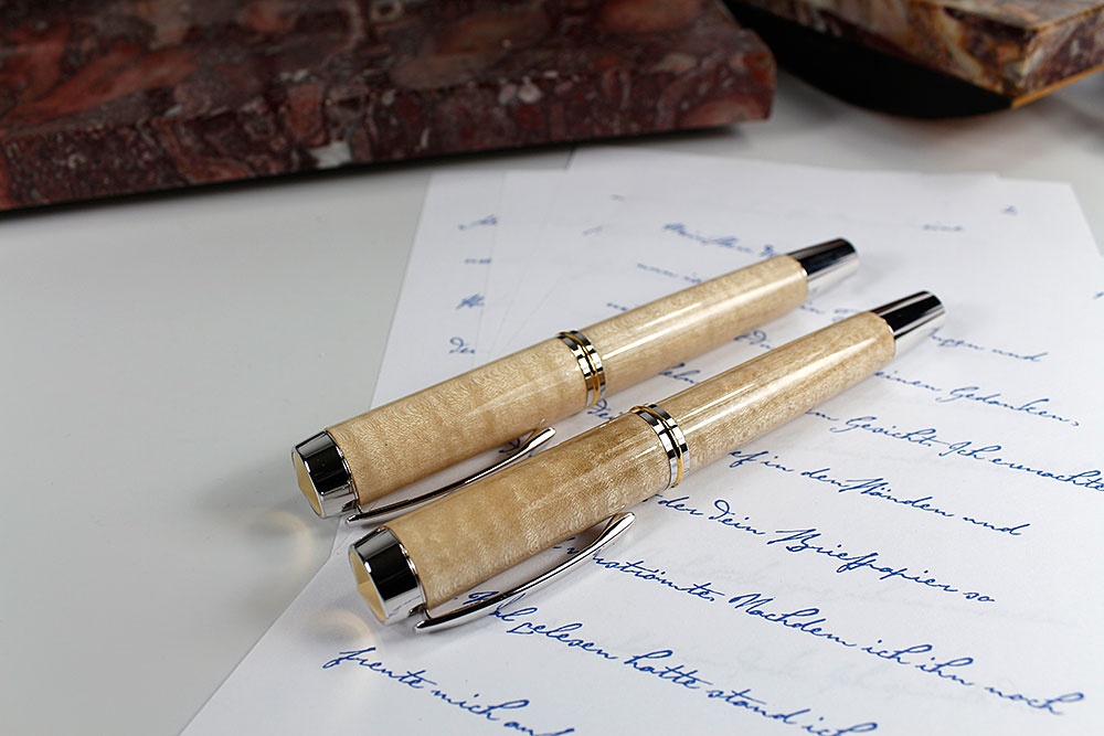 Die Rollerballminen sind mit einer Keramikkugel ausgestattet, die ein federleichtes und sehr gleichmäßigem Gleiten über das Papier ermöglicht und das Schreiben zu einem Genuß macht.