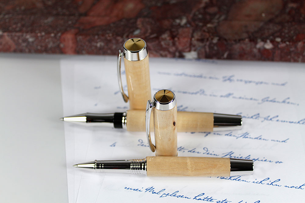 Die Rollerballminen sind mit einer Keramikkugel ausgestattet, die ein federleichtes und sehr gleichmäßigem Gleiten über das Papier ermöglicht und das Schreiben zu einem Genuß macht.